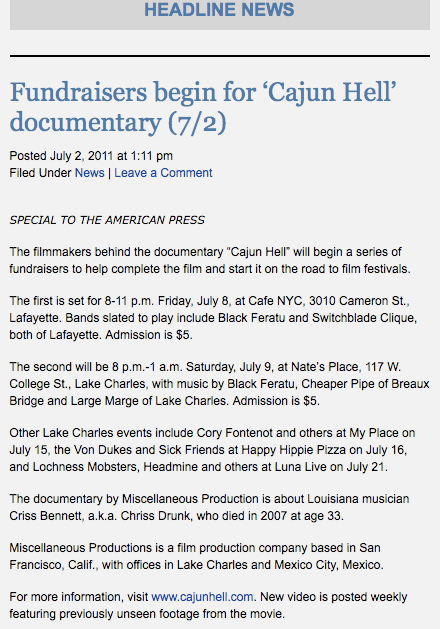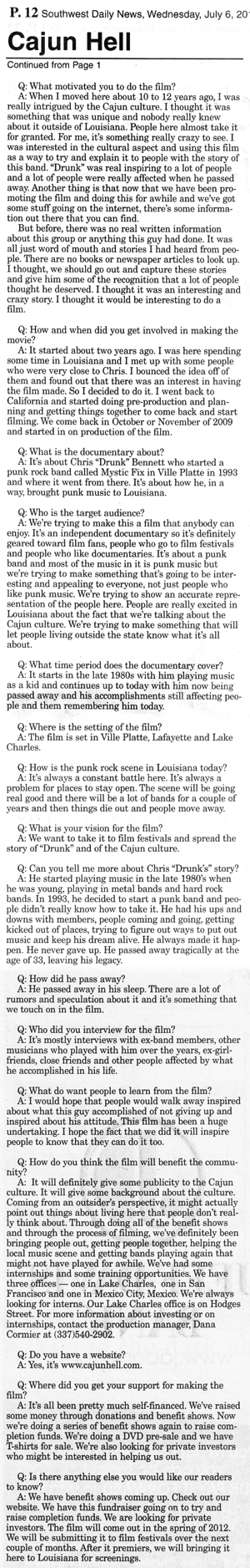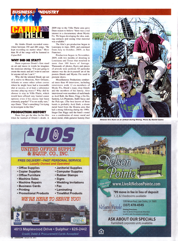 PRESS Download the full-resolution .PDF file Ville Platte Gazette, July 2011: Download the full-resolution .PDF file Southwest Daily News, July 2011: Read the article at the Southwest Daily News website Lake Charles American Press, July 2011: Read the article at the American Press website Lagniappe Magazine, July 2011: Download the full-resolution .PDF file Lake Charles American Press, June 2011: Download the full-resolution .PDF file Lagniappe Magazine, January 2011: Download the full-resolution .PDF file Louisiana Film & Video Magazine, October 2010: Download the full-resolution .PDF file Shred Academy, July 2010: Read the article at the Shred Academy website |